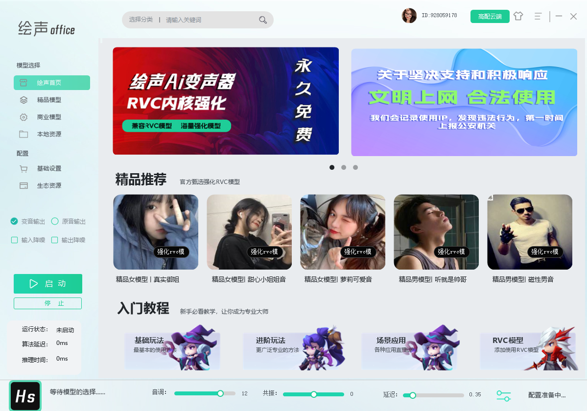 1、绘声Ai永久免费,基于rvc魔改内核,延迟最多低40%,超多极品模型免费用