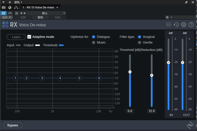 总之,RX 10 Voice De-noise 插件专为在数字音频工作站(DAW)或非线性编辑系统(NLE)中的轨道上插入使用而设计,能够高效地实现自适应噪声去除,并且具有零延迟的特点,在不影响音频同步的前提下,为音频中的人声部分提供高质量的降噪处理,极大地提升了音频的质量和可听性.
