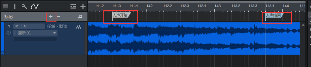 标记轨显示后,会自动有两个默认标记:开始和结束标记。