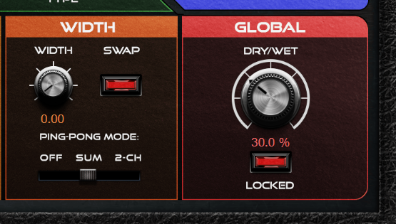 GLOBAL设置音频的干湿比,也就是混音效果,设置参数前需要解除锁定,即将LOCKED按钮点亮才可修改参数。