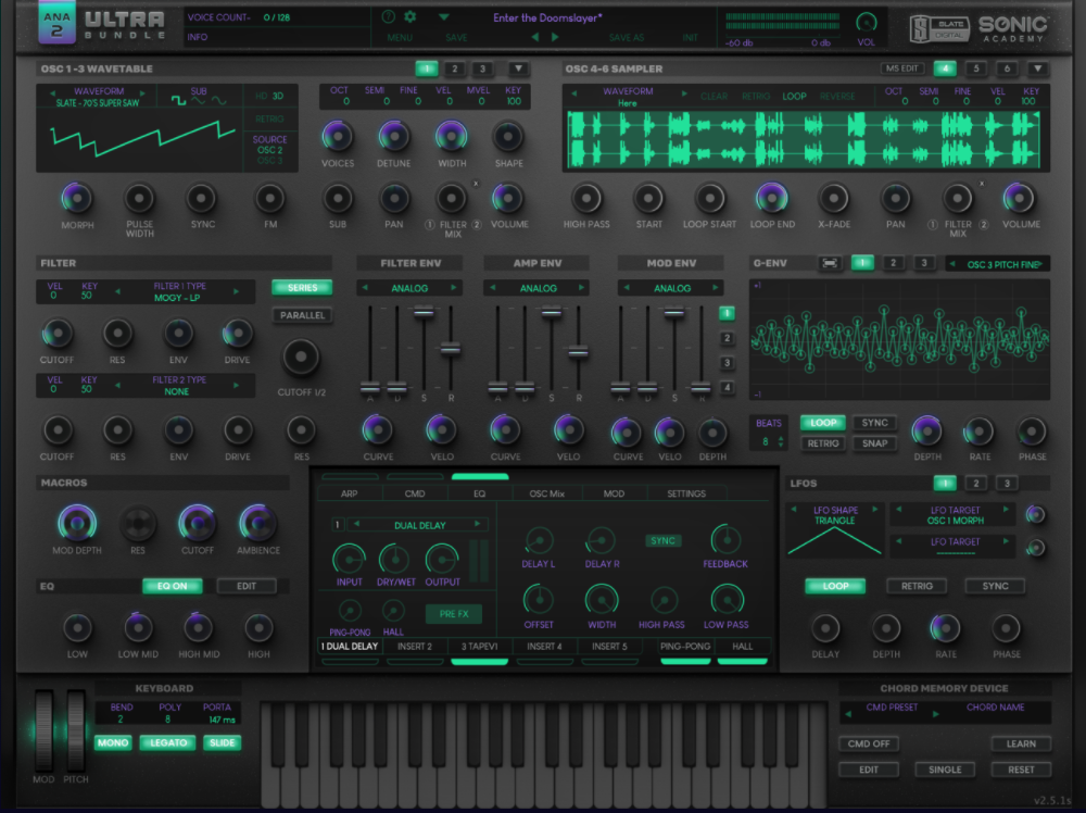 拥有超过 1,700 个预设、定制扩展包和独特的外观皮肤,以及全新的多重采样模块,ANA 2 Ultra Bundle 是一款极其多功能的乐器。