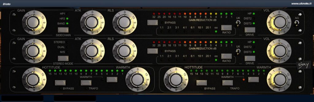 Disto复刻于一款非常著名的压缩器Distressor EL-8X,它可以给你的声音增加2次和3次谐波磁带饱和式失真.